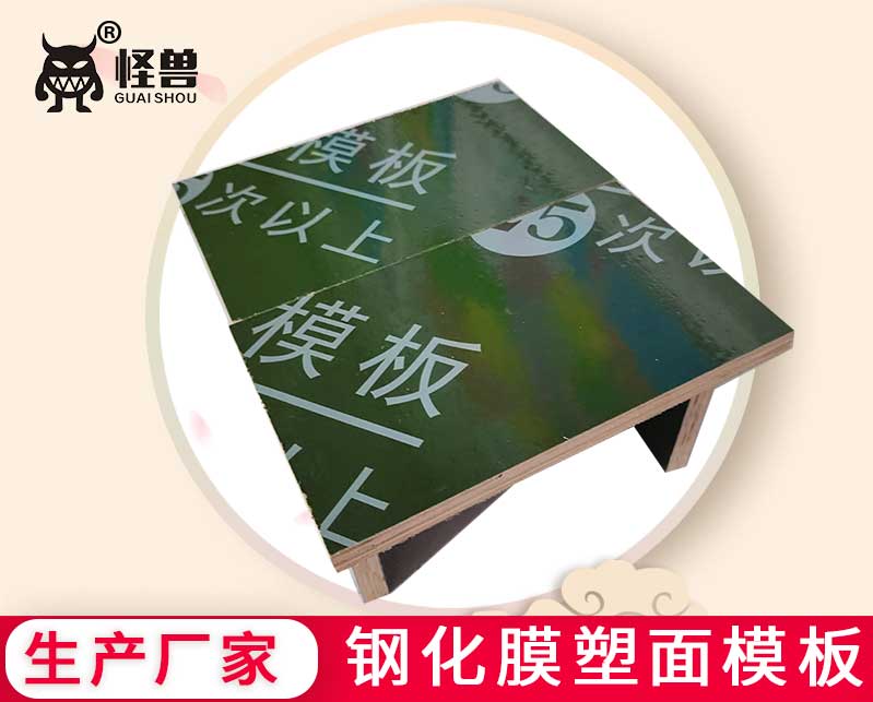 怪獸木業(yè)研發(fā)生產(chǎn)鋼化膜塑面模板,采用鋼化塑面模板技術(shù)生產(chǎn)的覆塑建筑模板、土豪金鋼化膜塑面建筑模板保用周轉(zhuǎn)33次。