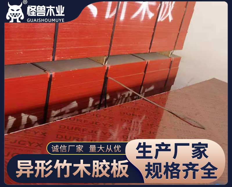異形竹木膠板:竹膠板用竹子做的多層膠合板,木膠板就是木材及木鋸末做的膠合板。竹膠板比木膠合板耐用,周轉(zhuǎn)次數(shù)較多,剛度好,價格較高。但是木膠板在梁底等部位使用效果要好于竹膠板。